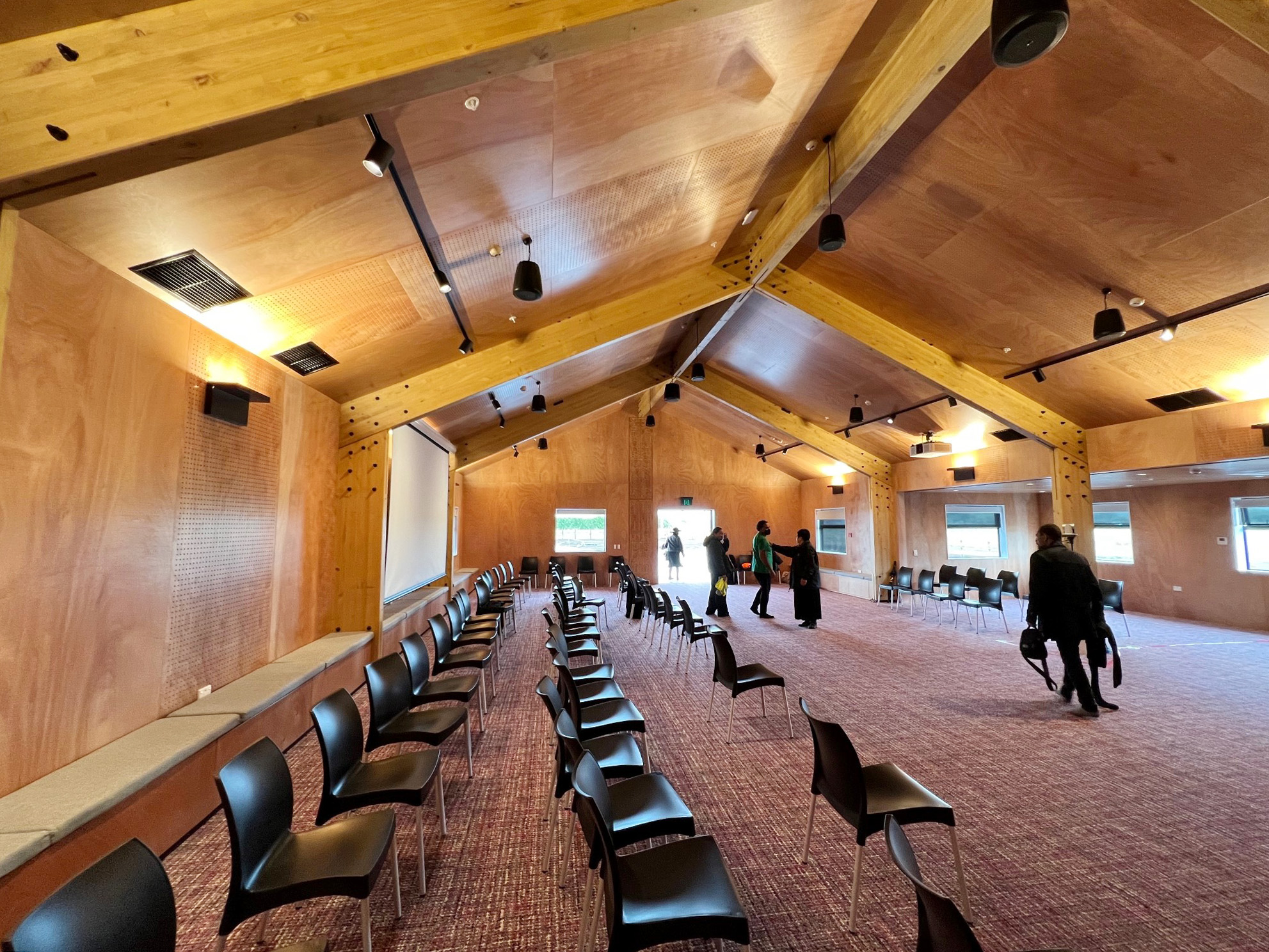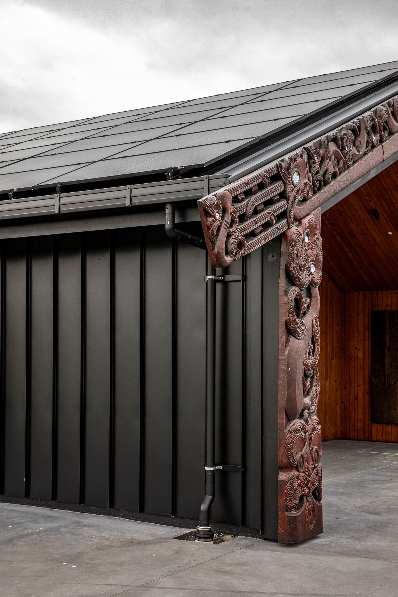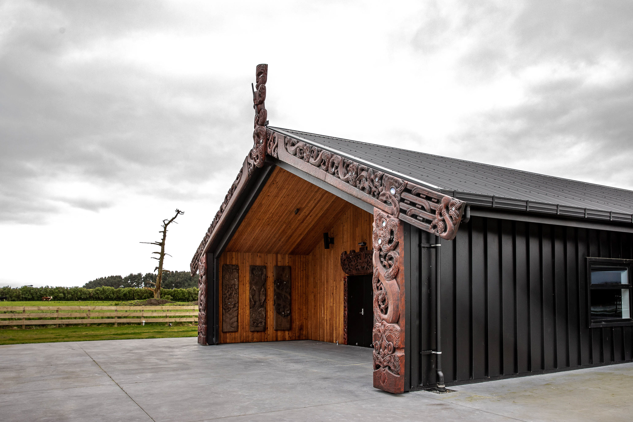 The design is a contemporary new marae that embraces the traditional values of the Iwi while looking to the support the economic aspirations of the future. Elements of the design are well considered to meet the versatile needs of the modern marae. Acoustic properties were important as well as transitional spaces with storage and function at the forefront. Included is a covered mahau with footwear storage, an adaptable wharenui with the ability to sleep up to 130 people but also be used for a variety of other activities, a separate Kaumatua wharemoe, wharekai and commercial kihini as well as a childrens play room and office/ administration room that displays and stores pukapuka, photos, memorabilia and precious taonga.