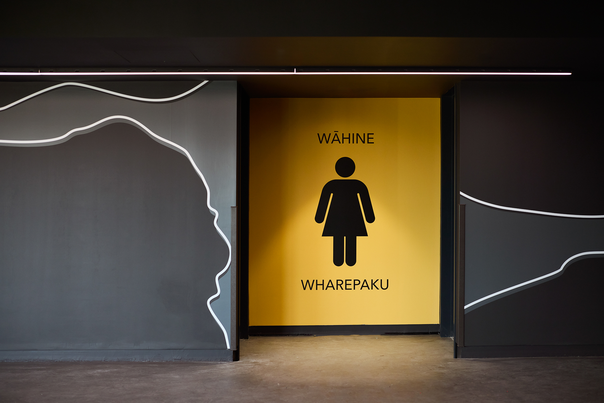 A key part of our role was working closely with Ngāti Te Whiti and Kerehama Waru Te Pū on the cultural identity and design elements of the new stadium. Facilitating a process in which stories could be shared and visual opportunities realized. Inclusiveness become a strong theme for the project, with Maunga Taranaki being the lifeblood of the region with its waterways that flow down the mountain like veins in the human body. This become a focal point of representing the idea that ‘water is life’. The glazing patterns reflected onto the rear concourse are a interpretation of the widely shared view of Maunga Taranaki reflecting in the Pouākai Tarn. The glazing utilizes colour and pattern representing rain and snow all upon Maunga Taranaki flowing down through the many streams and rivers flows and sustaining the land. The design narrative is also reflected inside with windows and doors repeating the patterns on the outside of the buildings, while rivers on the walls of level one have been directly sketched from original drawings of waterways in the area.