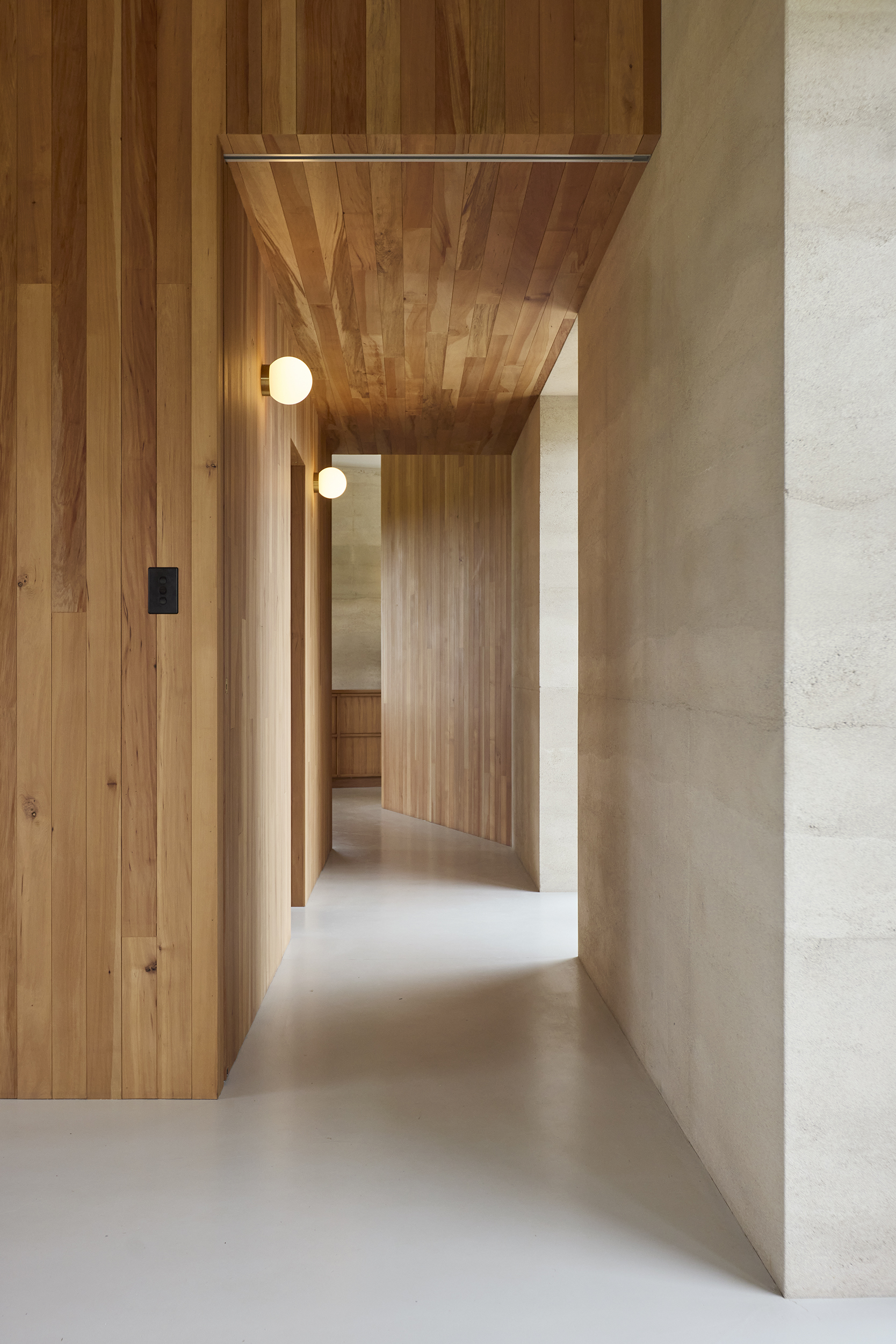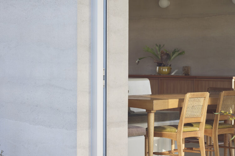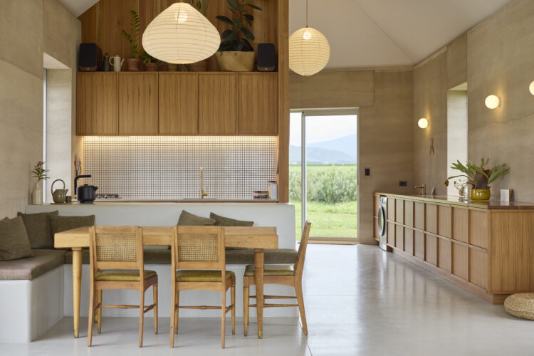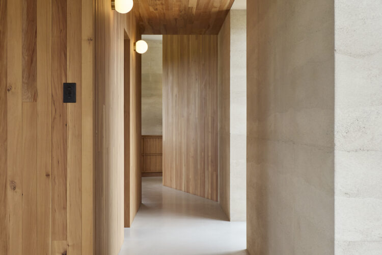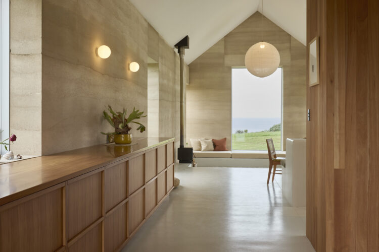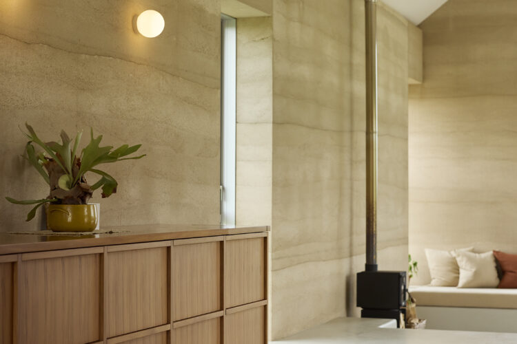 The home, developed in collaboration with builder Jeff Fairweather, required every construction detail to be resolved before building began —with openings, window reveals, ceiling and roof junctions all built into the rammed earth structure. The brief from the clients was a compact, simple home for two people with a ceiling height that created volume. Durability and low construction waste were also client priorities, and a commitment to rammed earth and early decision making have ensured a successful off-grid build.