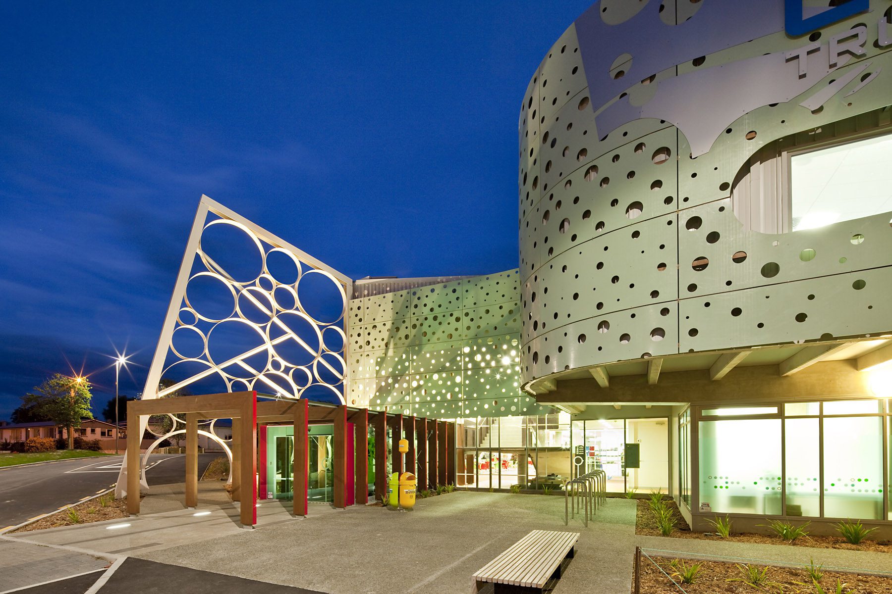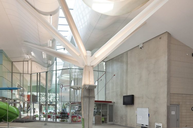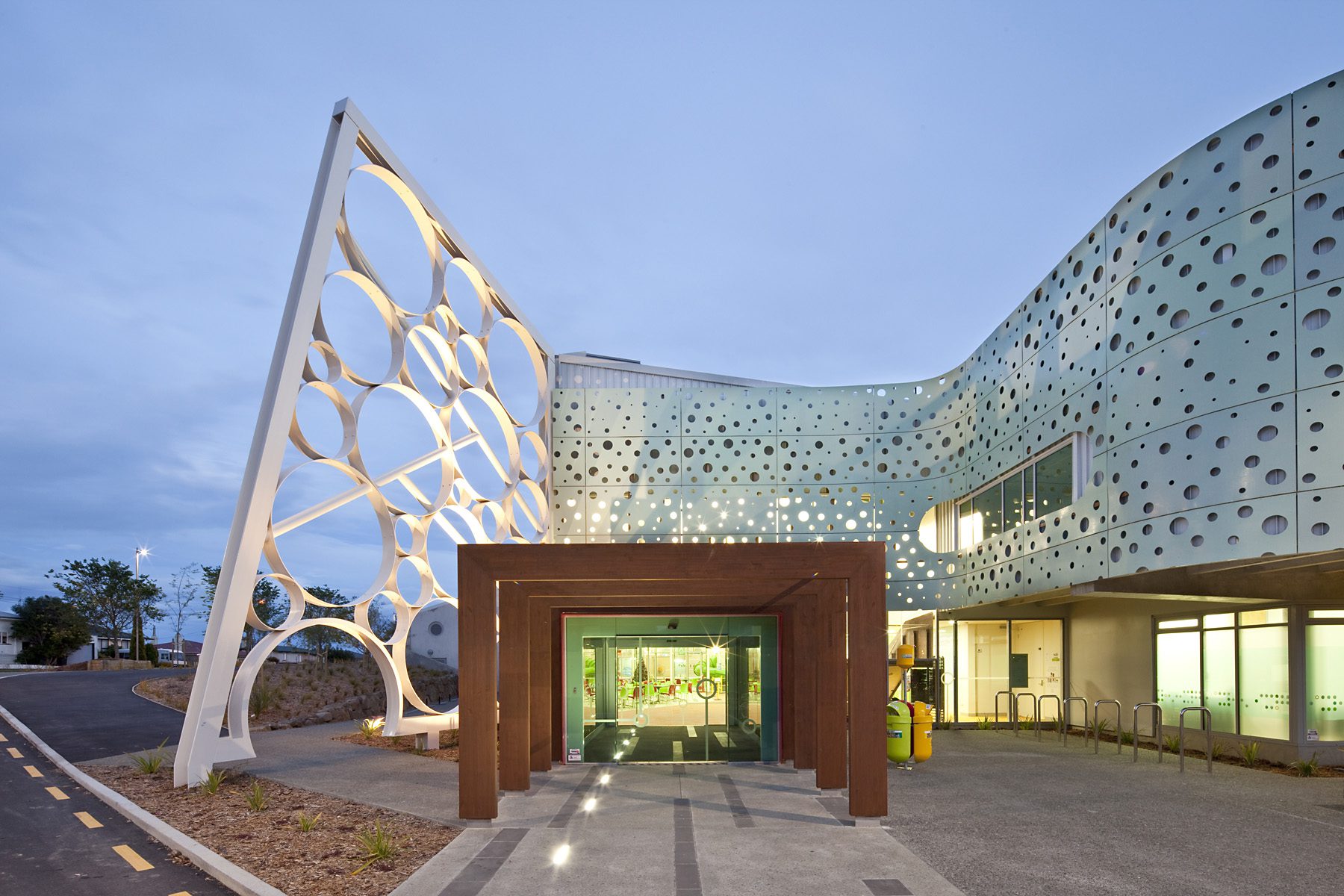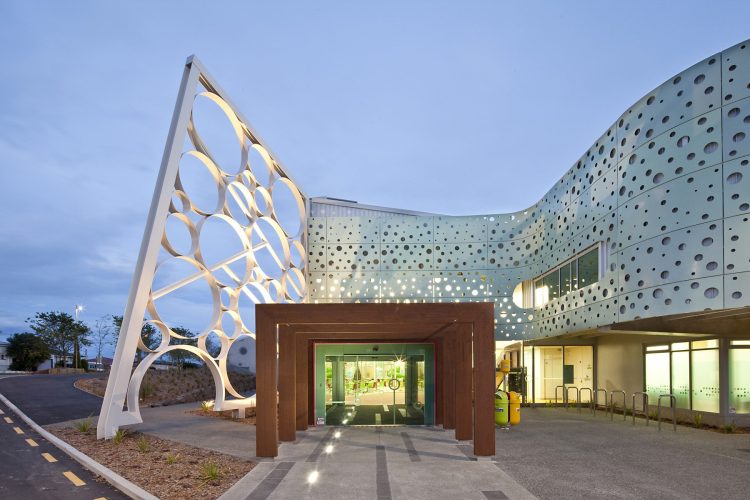 This vision has come to life, providing another prolific spot along the dusky Caroline Bay. Key to the success of the project is the building structure and pools design. Elegant branching structural steel supports an enormous roof area with few columns interrupting sight lines through the pool areas.