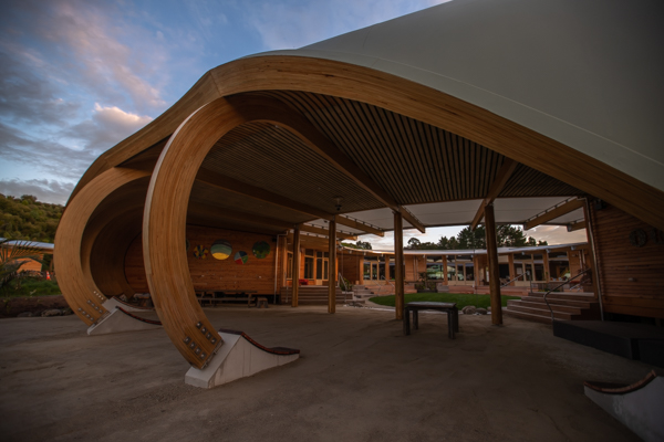 The brief placed importance on continuing the visual impact of natural, modern, soft form and curiosity-invoking objects in the landscape, which had been applied to the campus’ first stage – three “waka” classrooms. The brief also called for experiential qualities that would cater to new arrivals and the younger students, while feeling welcoming and nurturing.