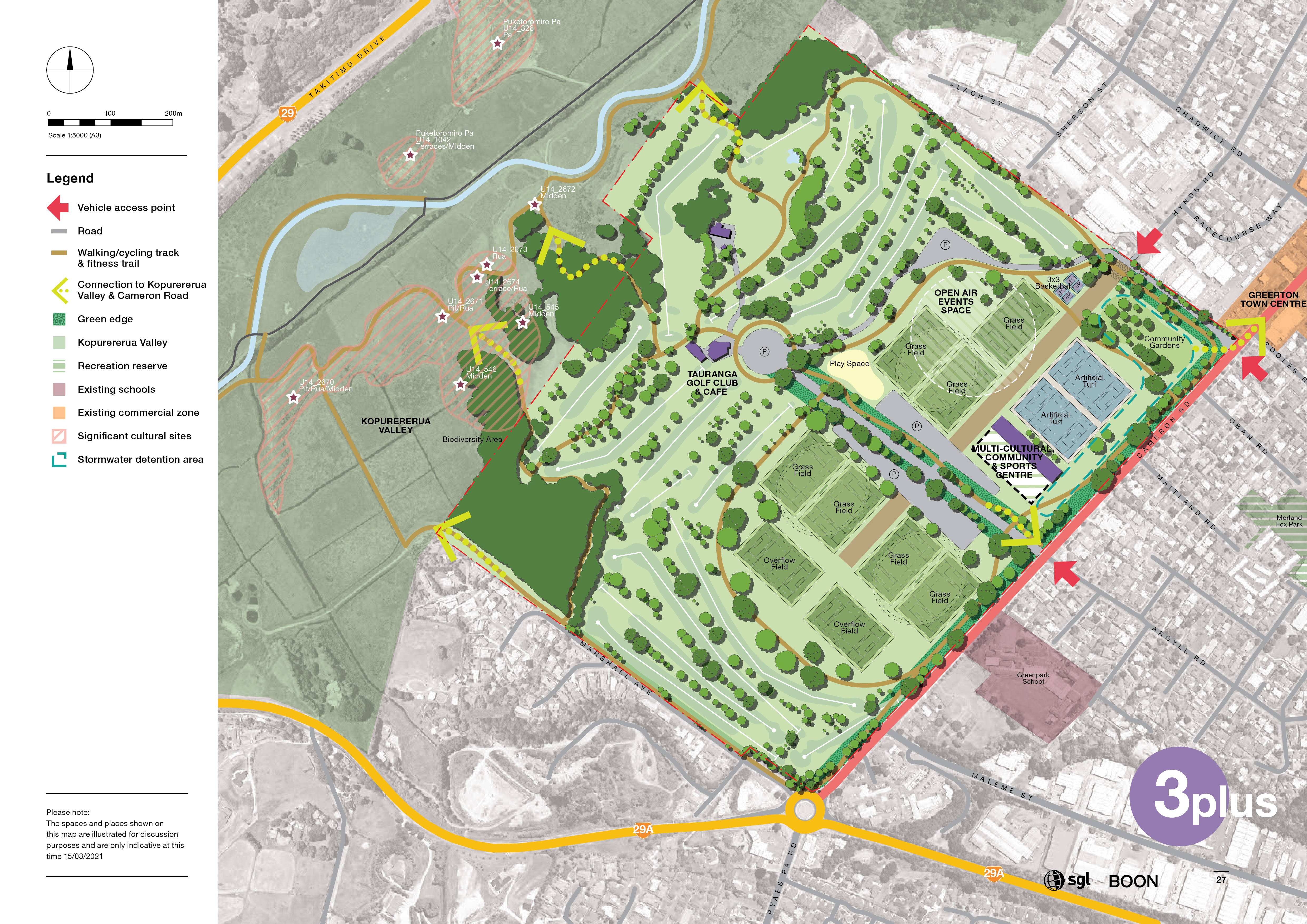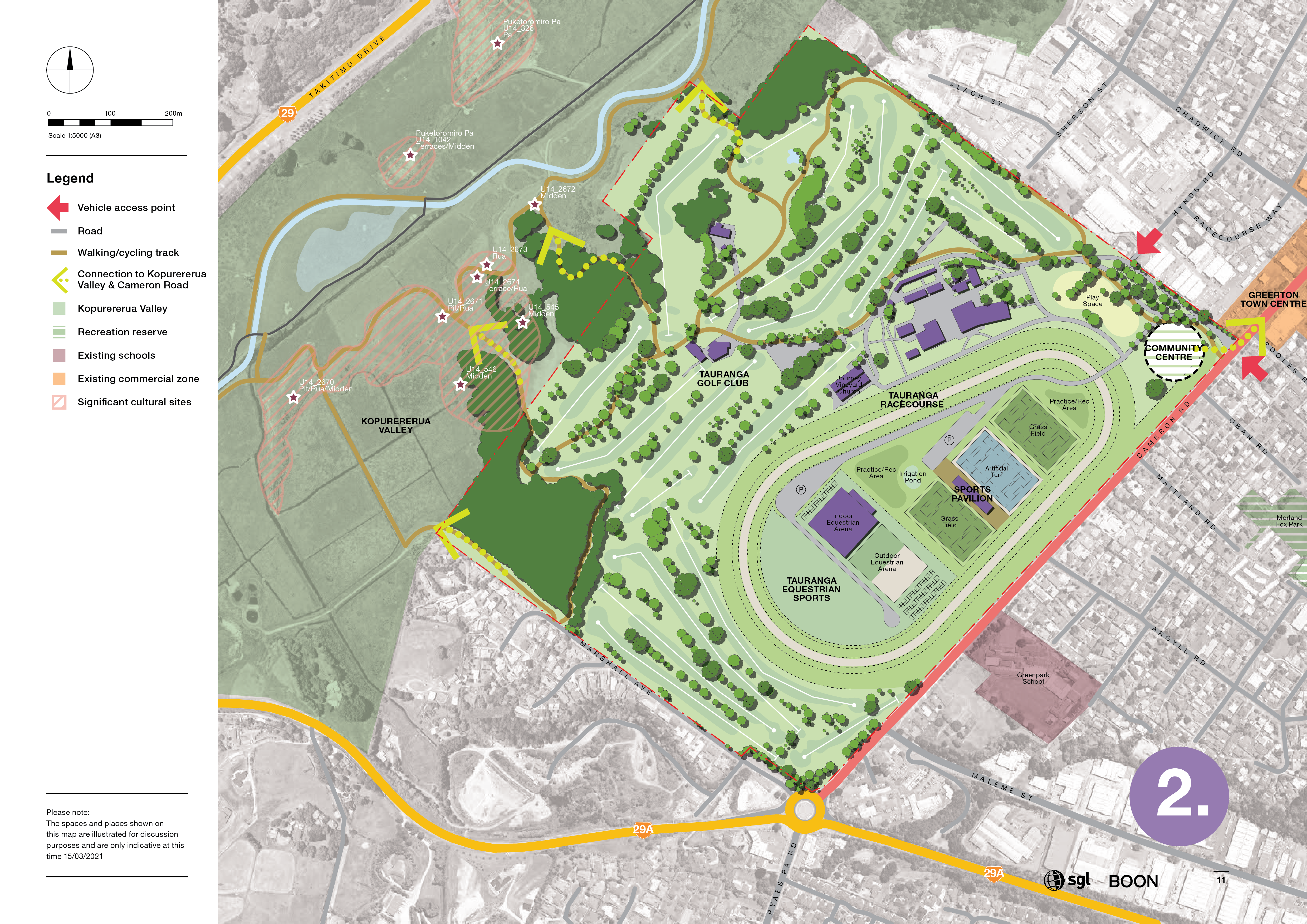 The total area of reserve land is 85ha which is about the size of 100 rugby fields. Current activities on the site include golf, horse racing and equestrian, as well as limited access to Kopurererua Valley at back edge of the golf course. The purpose of the Greerton Maarawaewae study is to identify opportunities that will support wellbeing and livability as the city continues to grow. The results of the first phase of public consultation helped inform the option development from a narrowed down 10 options to 3. Working through a multi assessment process, public consultation, and hearing process, a recommendation for the future use of the land will be made to the crown in mid 2023.