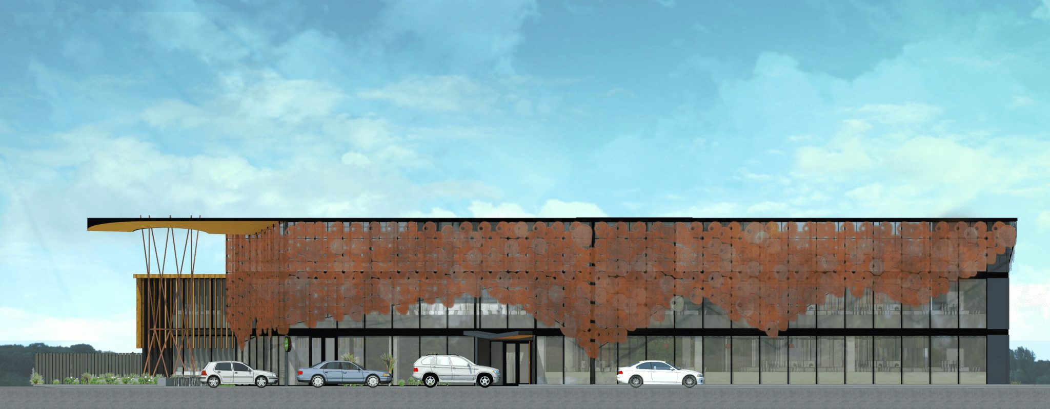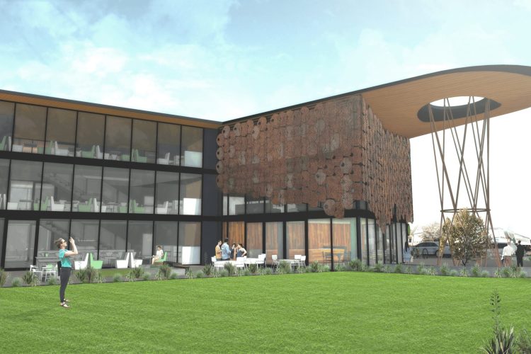 The planning, form and surface of the project was inspired by toki and punga. Their design, use, shape, spiritual signification and beauty were used to inform the conceptual design of this project. The values represented by each object allude to the vision of Rangitāne and the place of Māori in contemporary Aotearoa. The name of the building- Te Papaioea- refers to the natural bush clearing in this area where the city of Palmerston North was founded.