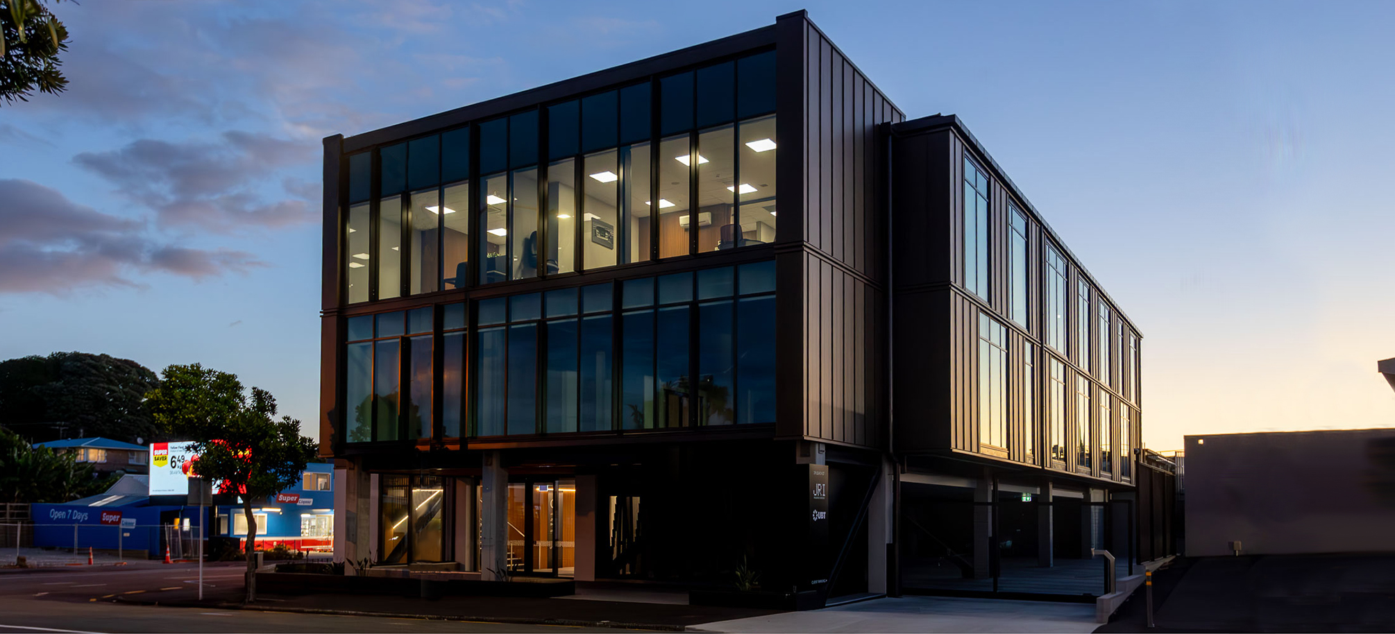 The Leach Street Development is a new two-storey commercial office building situated on a prominent inner-city New Plymouth corner site. The project was delivered as a design and build contract alongside construction partners Chris Bell Construction.