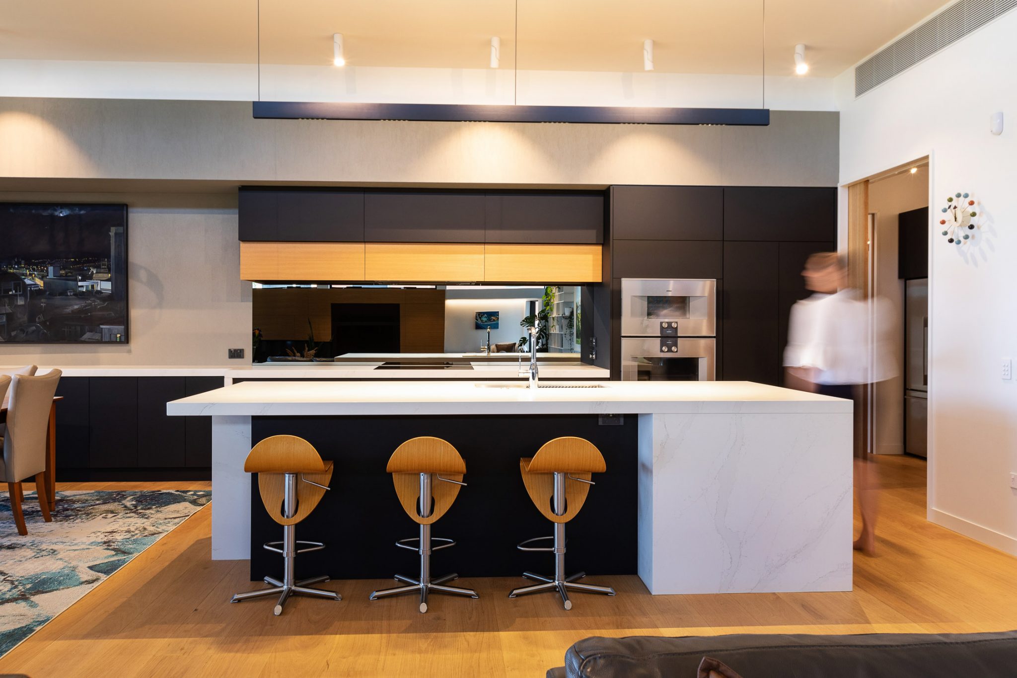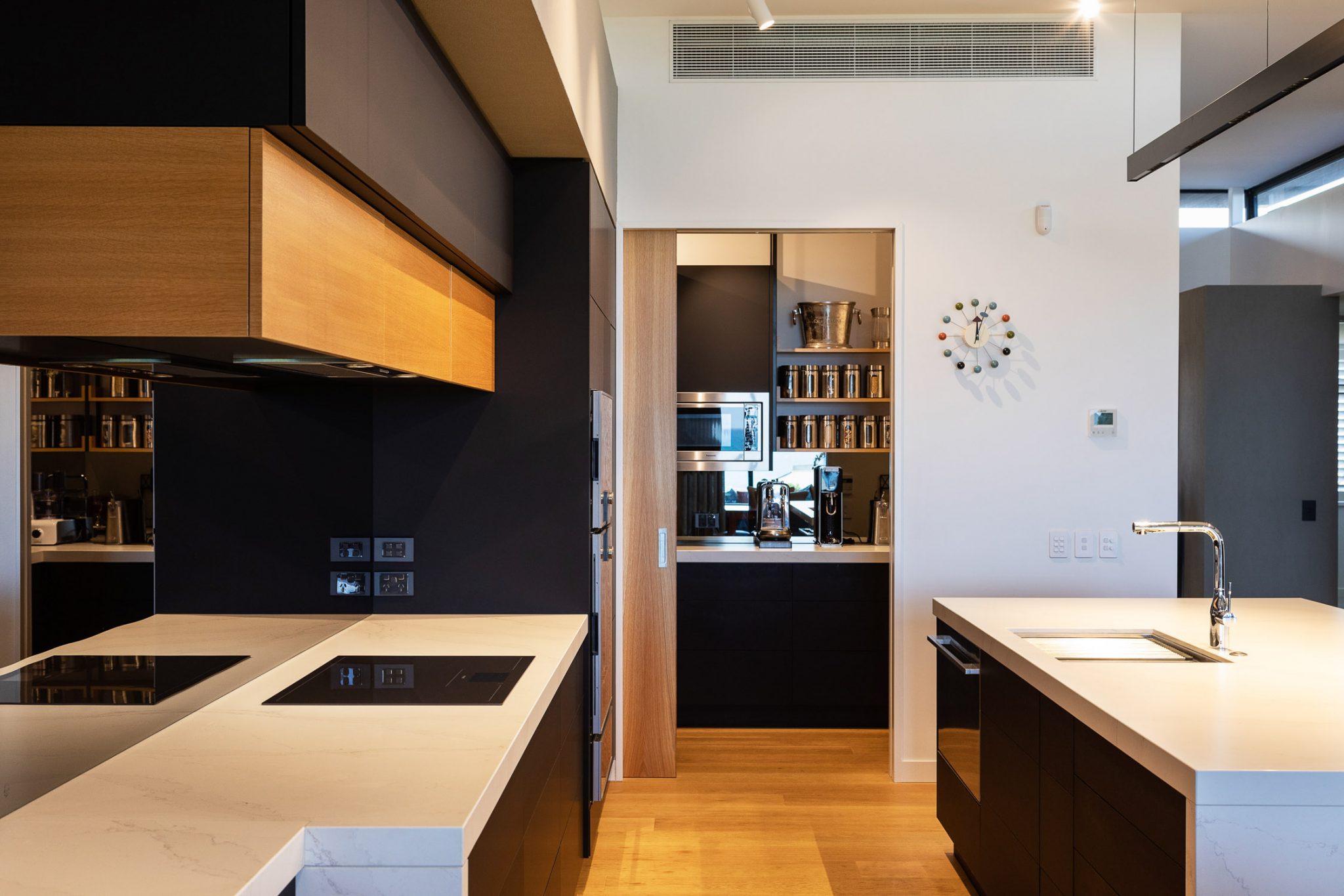 The design also cleverly responds to the client’s need for a completely accessible home. Future-proofing for unobstructed navigation throughout the house was a key criterion for the client and has been provided for through oversizing access ways and openings, and providing all level thresholds including a walk-in shower in the master ensuite.