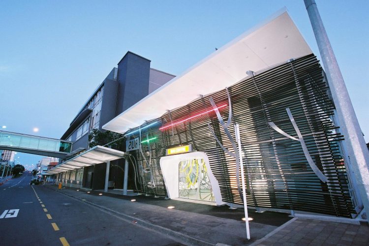 New Plymouth’s CBD Bus Centre is a robust concrete and glass structure.