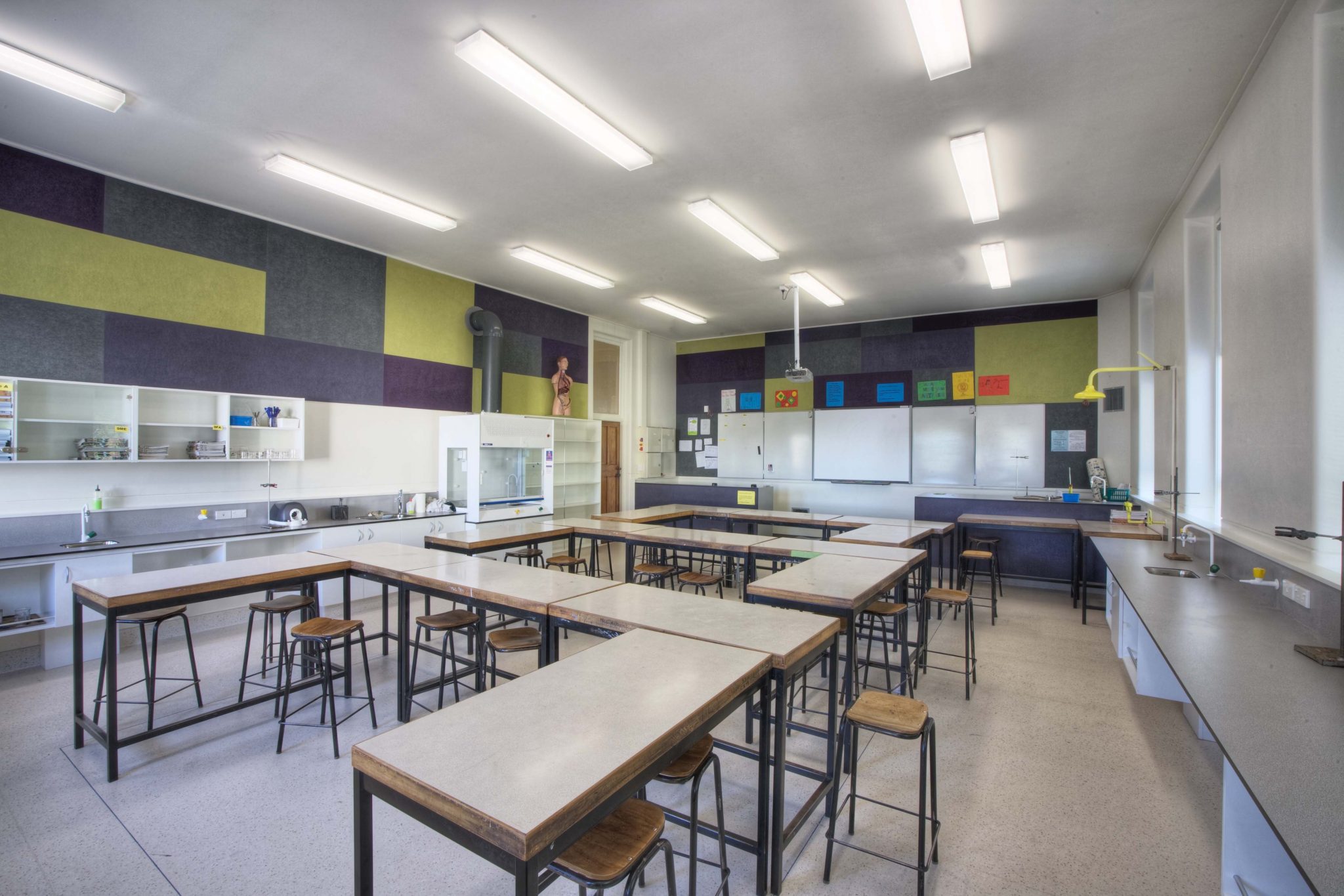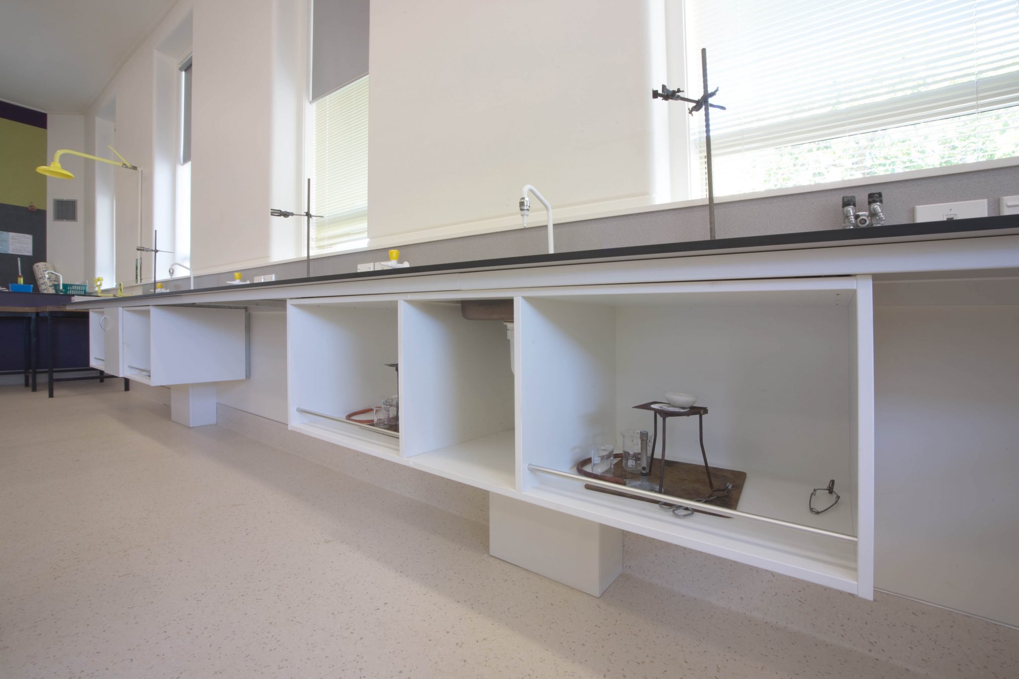 The layouts of the labs were replanned to suit modern teaching methods and the introduction of technology such as data projectors and smart boards. Fume cupboards were also incorporated. Storage was designed