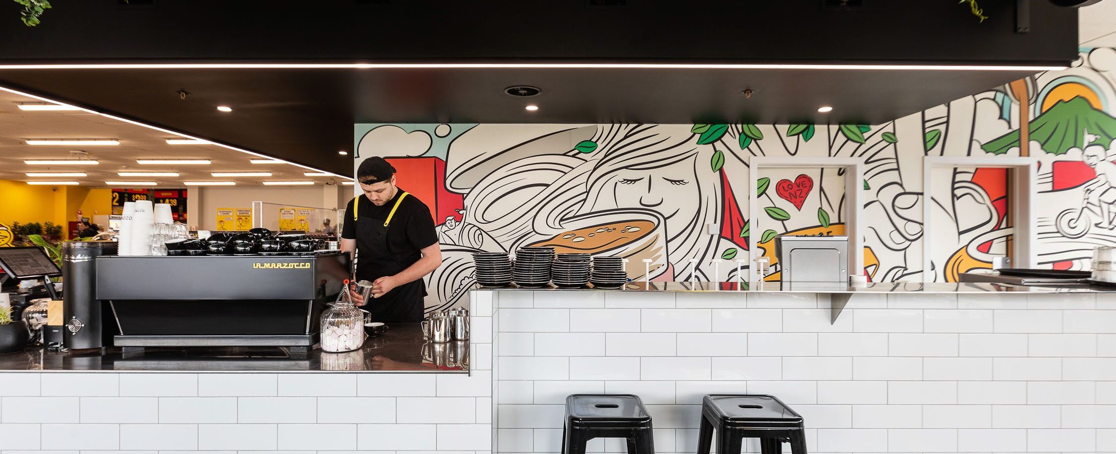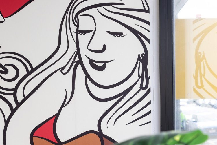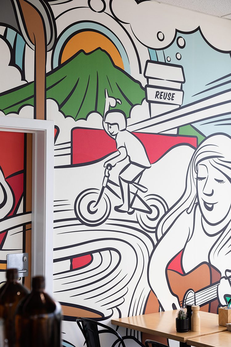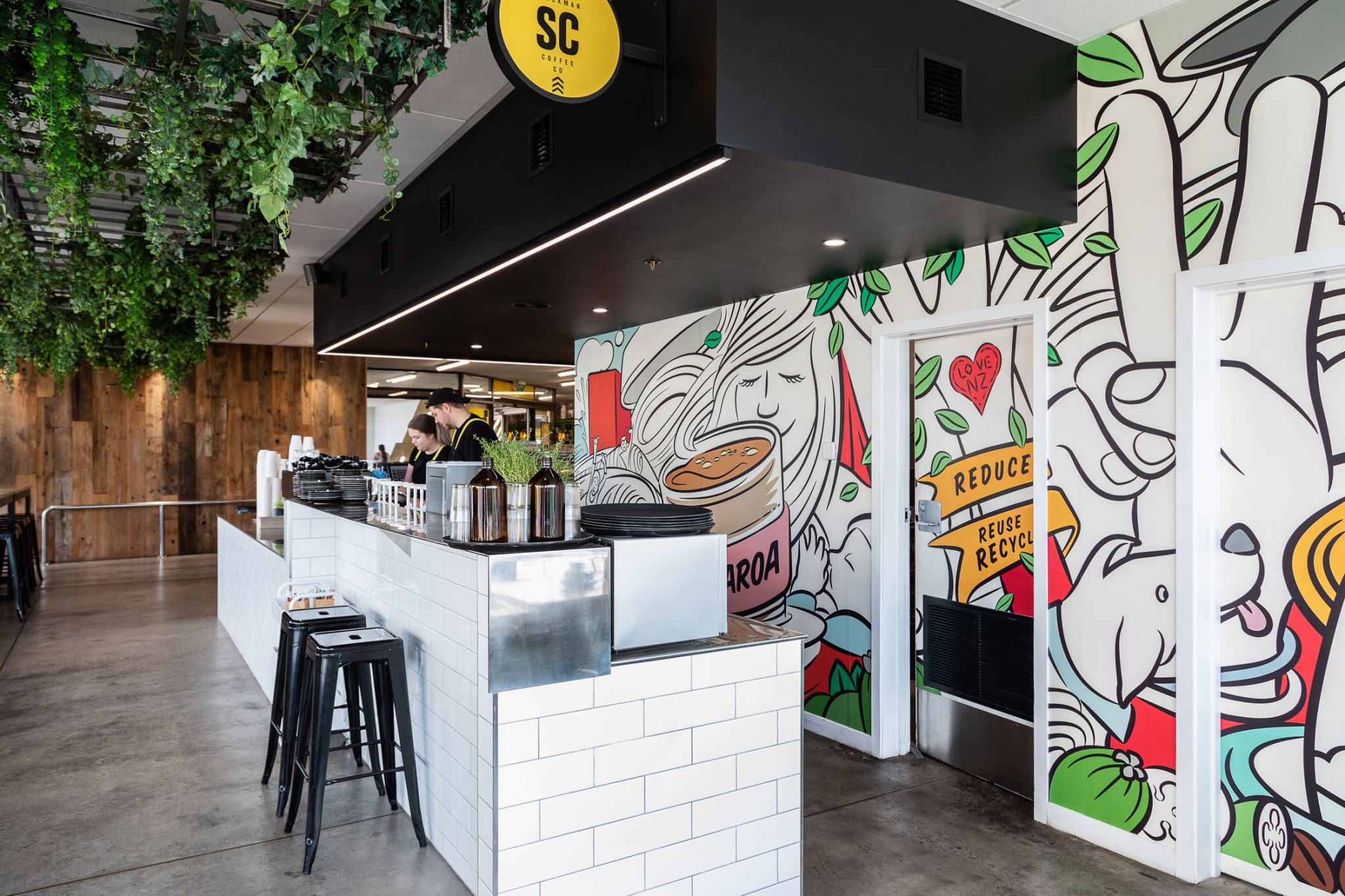 The bespoke decal artwork is what really brings this café to life. Drawn by the talented Sam Design, it features all things Kiwiana and is an added visual stimulation to enjoy while replenishing your food and beverage stores.