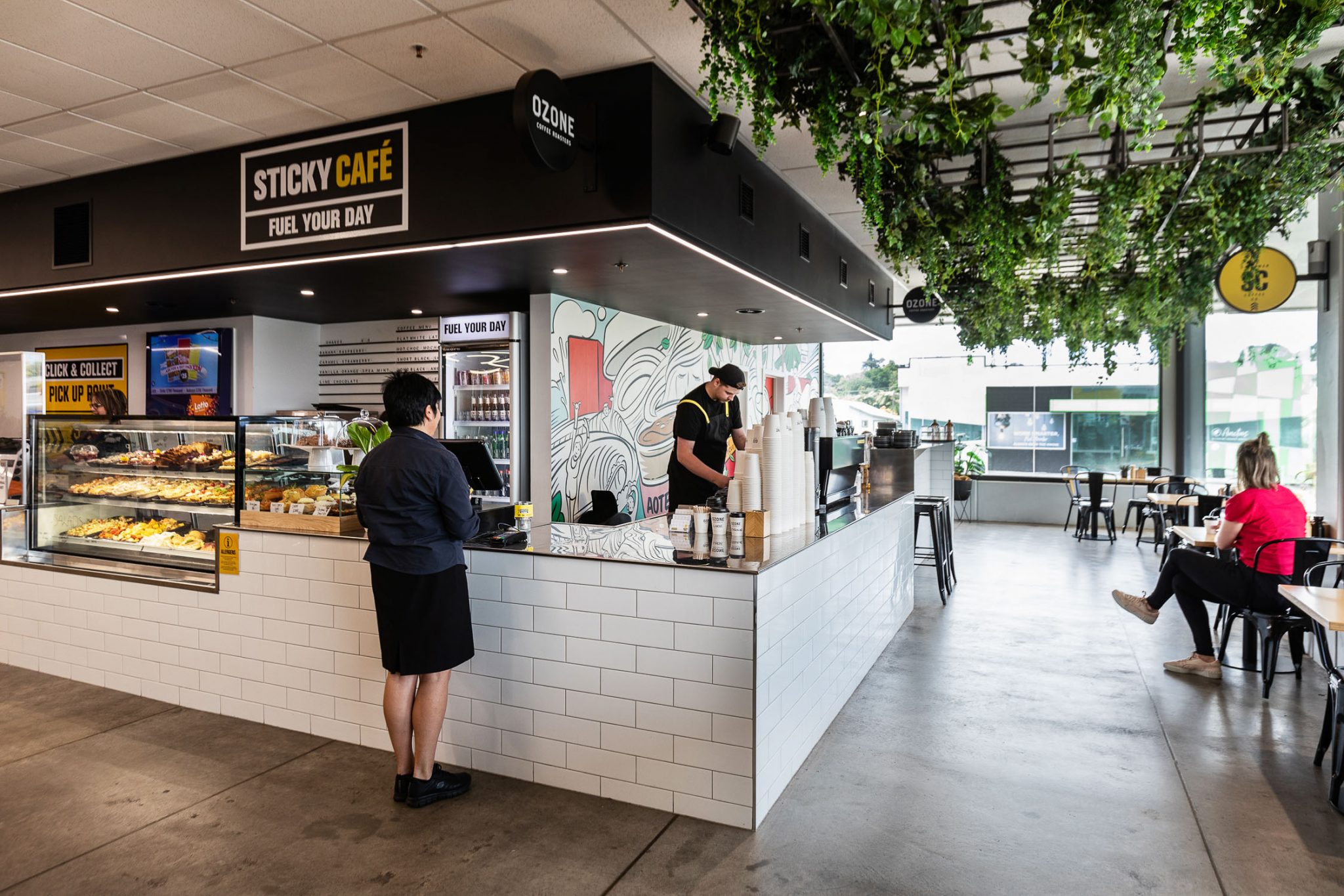This interior refurbishment project has exceeded expectations with the sticky café becoming a bustling little space once occupied only by trolleys. The reconfiguration project also involved moving the lotto stand and creating an area to accommodate the increasing demand for click and collect groceries as well as a courier parcel area.