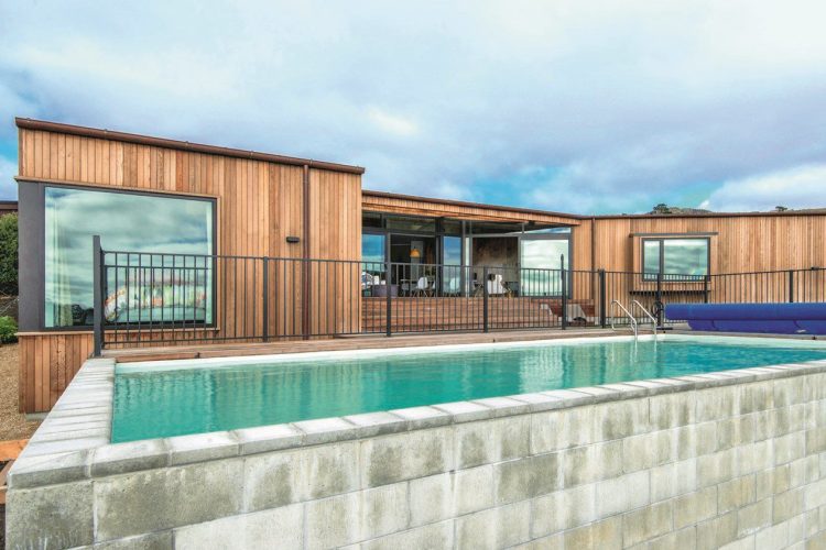 Clad in a cloak of cedar and curled up on the hillside, this contemporary home in Sumner, Christchurch captures sweeping ocean views around Pegasus Bay toward the Kaikoura Ranges.