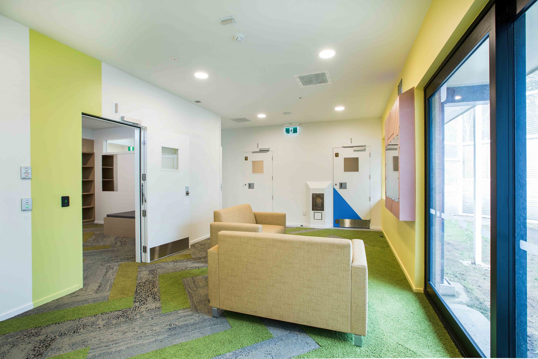 Patients have their own bedroom, a selection of group therapy rooms and a range of recreational facilities. Drab walls are now adorned with pastel green and orange, a vibrant carpet furnishes the lounge. The shift from a clinical space to revitalised, colourful and comfortable surroundings will be instrumental in helping those who need the IPC unit return back to mental wellness.
