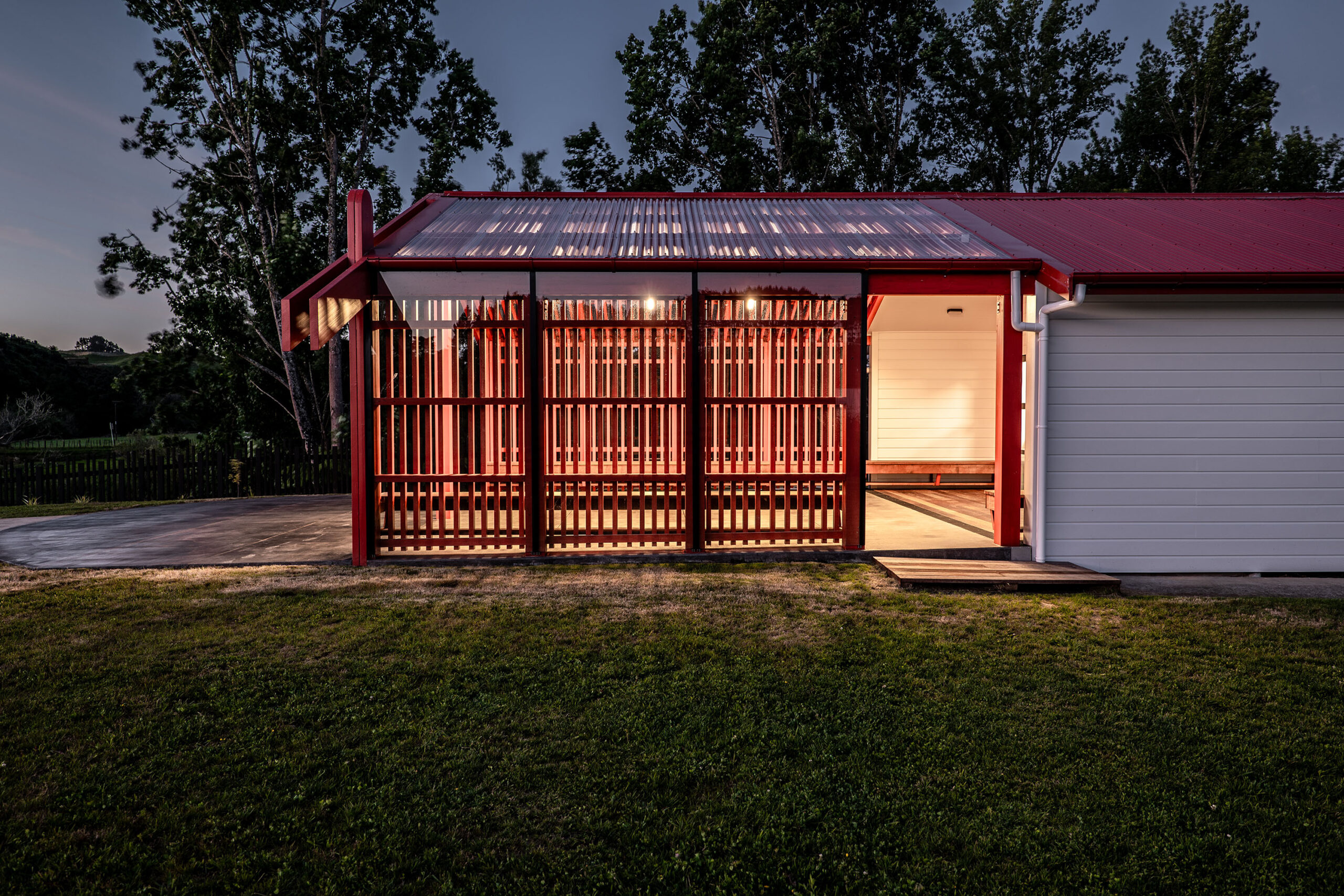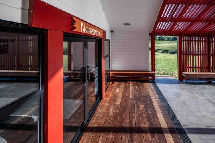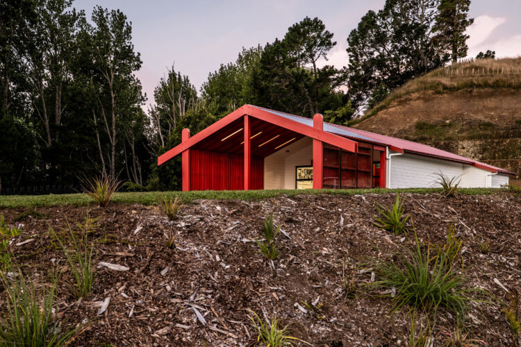 Improving accessibility was also a significant factor to the landscape planning – a concrete slab was built up underneath a new canopy extending from the front of Ngarongo – the wharenui at Te Upoko o Te Whenua Marae. Alongside substantial landscape works, the desire for the canopy was to remain humble. A sentiment which was to remain instrumental, observing the canopy as an extension of Ngarongo rather than an addition. A focus on simplicity and purpose formed the material selection and construction methodology for the canopy. A considerably humble approach has been taken to a space that is designed for shelter, improved access and function of the existing wharenui it extends from. Alongside the addition of the canopy, new aluminium sliding doors have been installed to the existing wharenui, refreshing and reinstating the existing aesthetic of Ngarongo.