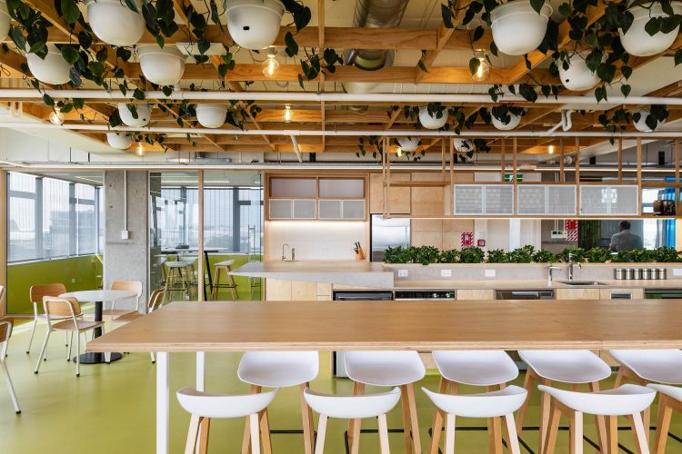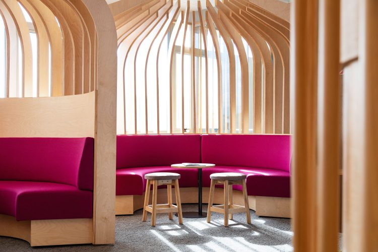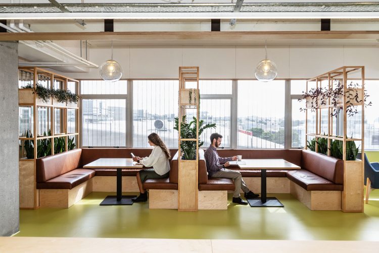 The design is very supportive of staff wellbeing and this is championed not only through material selection but also in terms of layout – The placement of the shared staff space toward the north end away from the main entrance of the space encourages staff to walk through. Thus enabling opportunities for connectivity with others that staff might not normally see at the office otherwise.