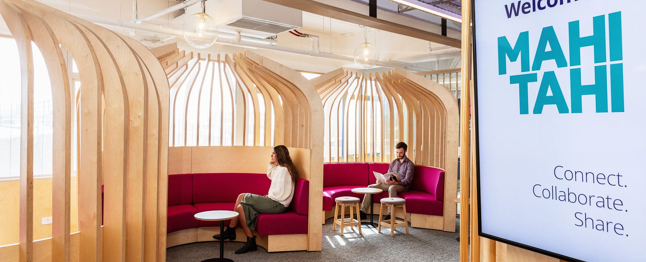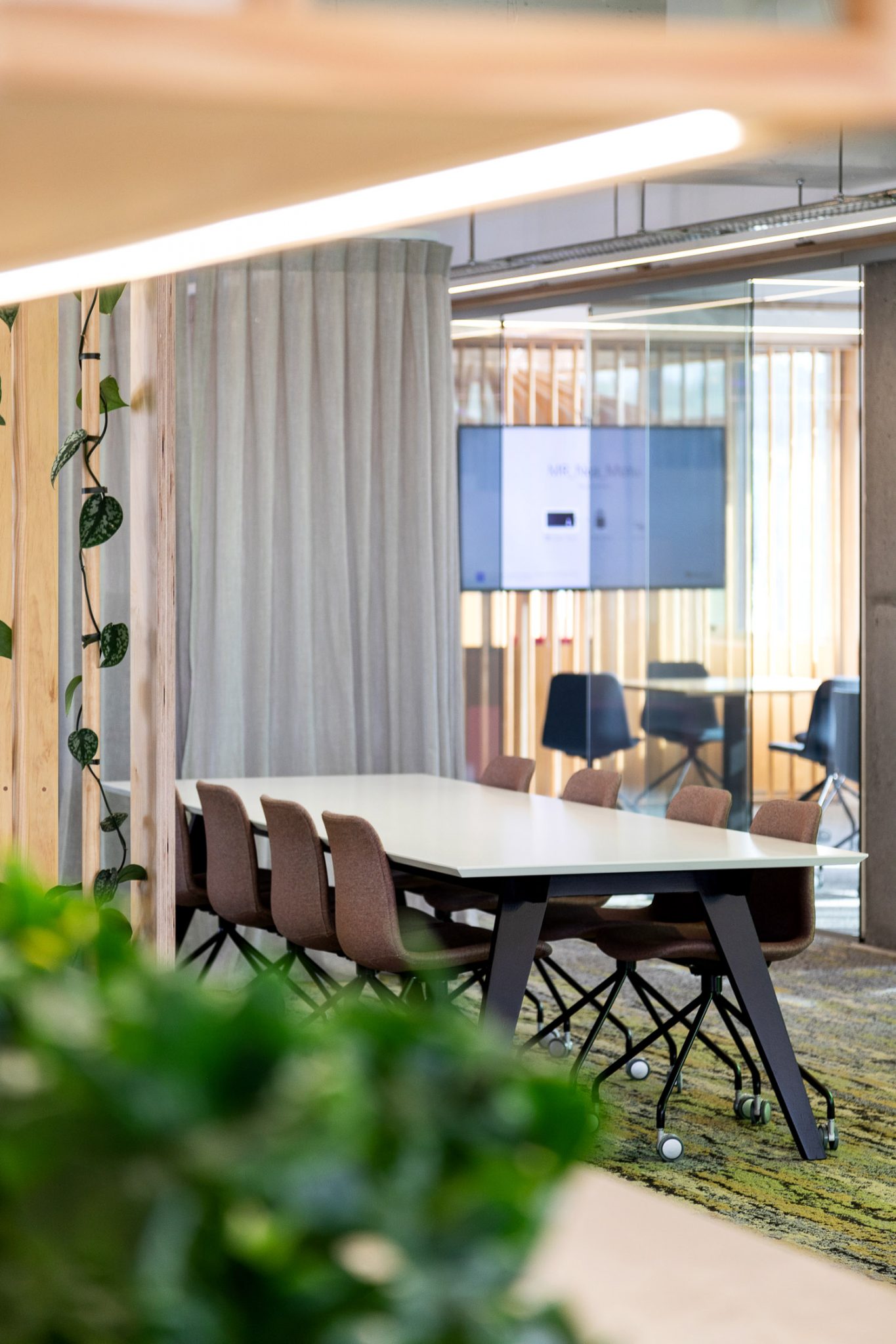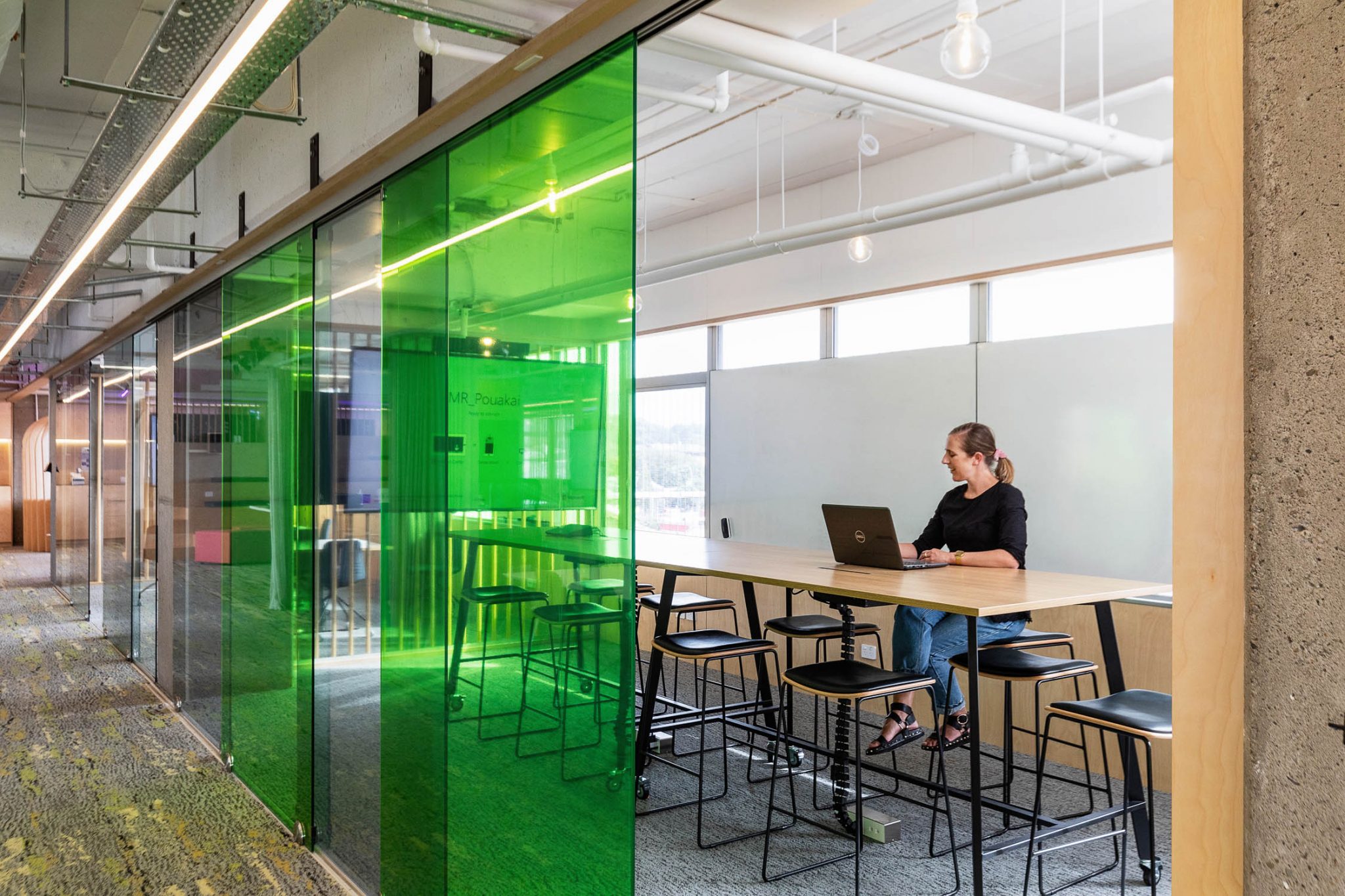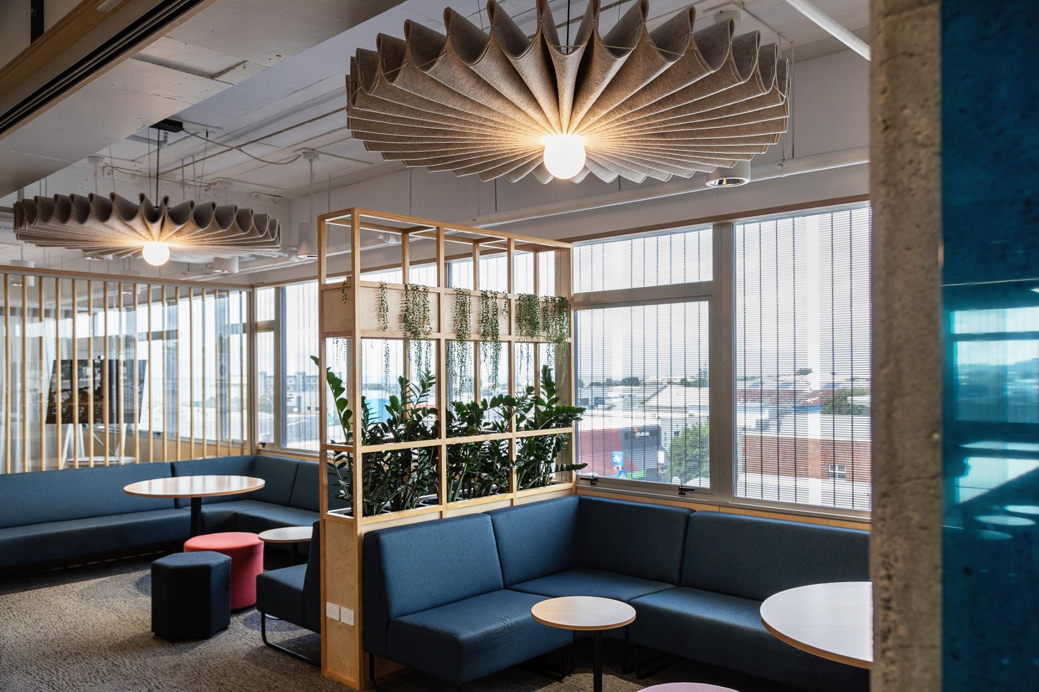 With a focus on creating a naturally productive atmosphere, materials have been selected based upon their environmental qualities. We specified an abundance of indoor plants and other natural materials including, timber joinery, NZ wool, and natural rubber as well as glass for increased natural lighting