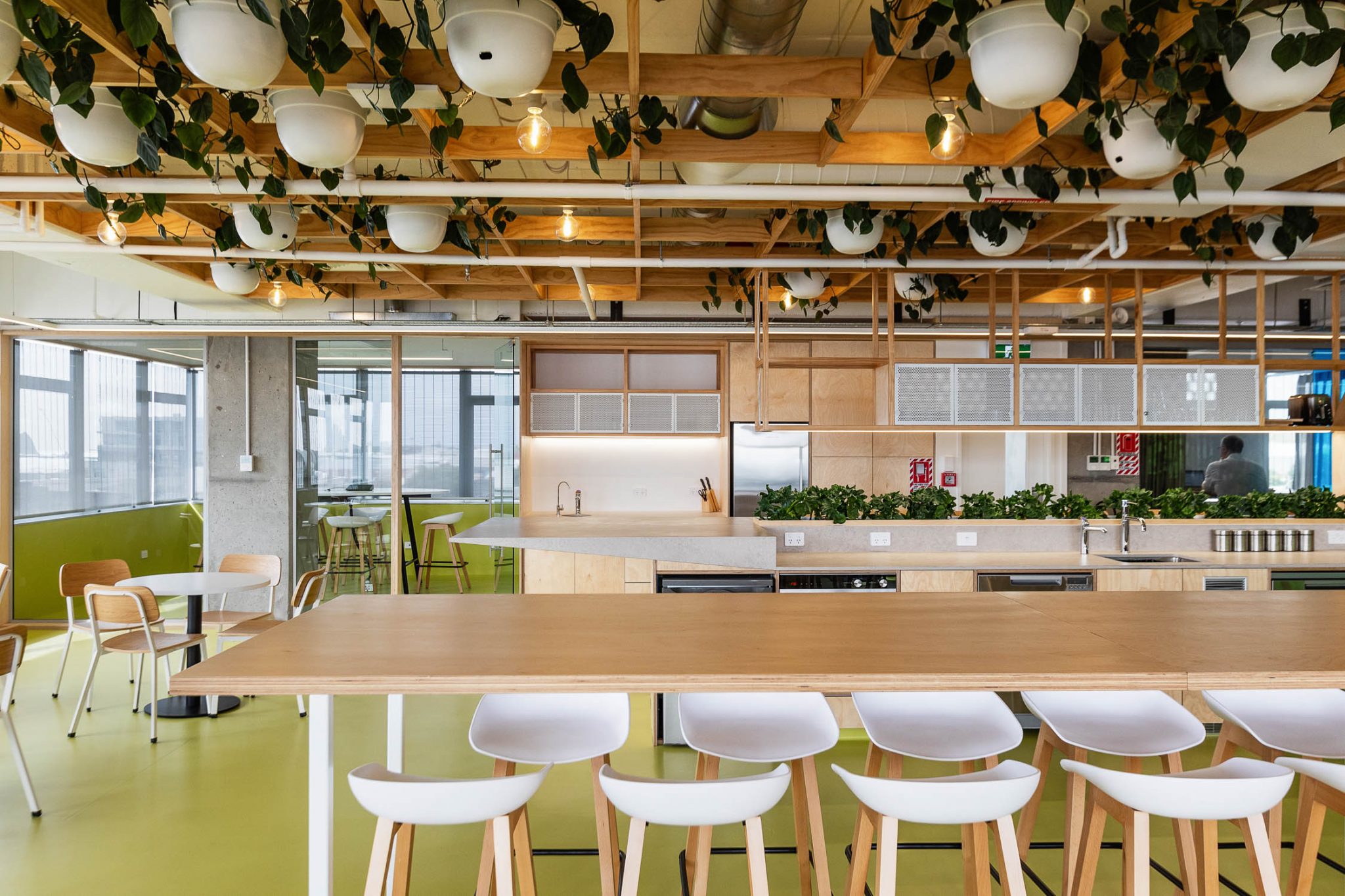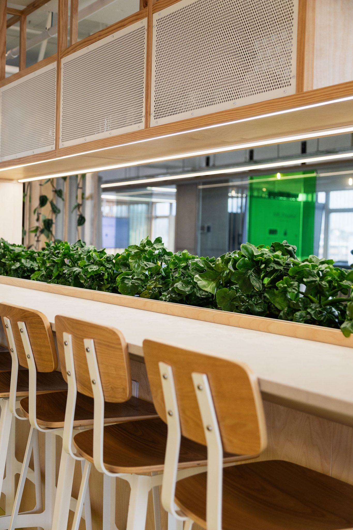 Our design response was focused on creating an environment with a naturally productive atmosphere. We likened the desired dynamic and productive climate to that of which you would find in a glasshouse. Creating zones that would aid idea propagation, innovation, and cultivation while also providing staff nourishment and replenishment.