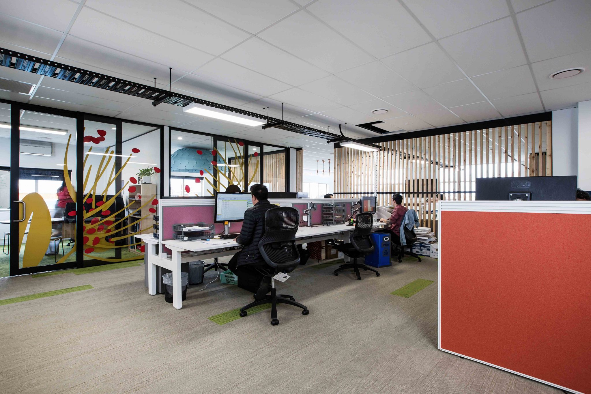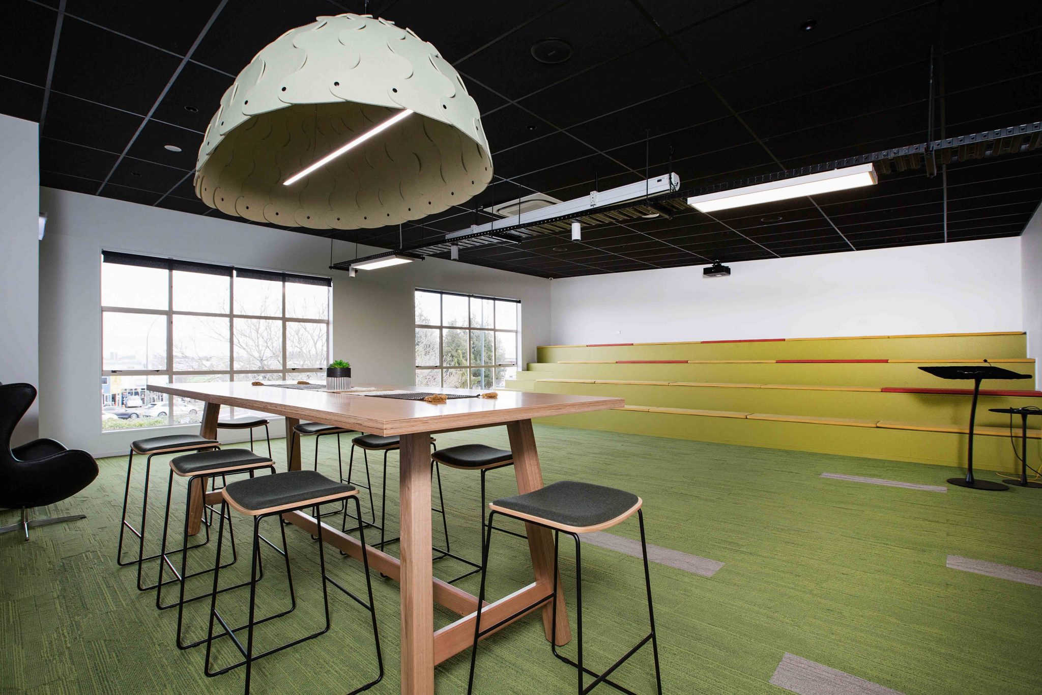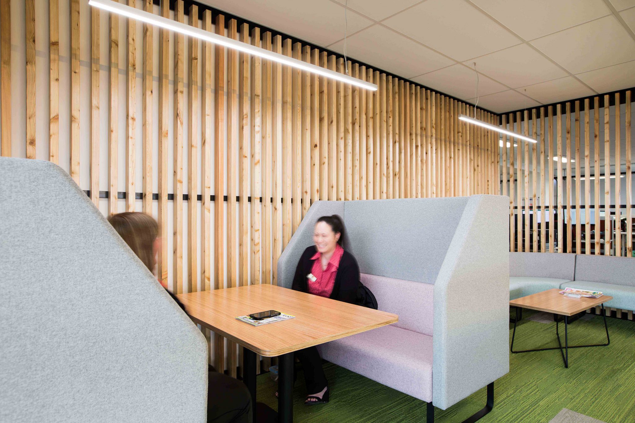 This state of the art flexible working space the caters to the team who are based here. The spaces are defined but flexible and multi-use with a nursing call centre, office, board and training rooms, meeting and interview rooms. Creating a comfortable but efficient working space for the team was at the core of the design, which used materials, colour, graphics and texture to produce a visually stimulating office environment.