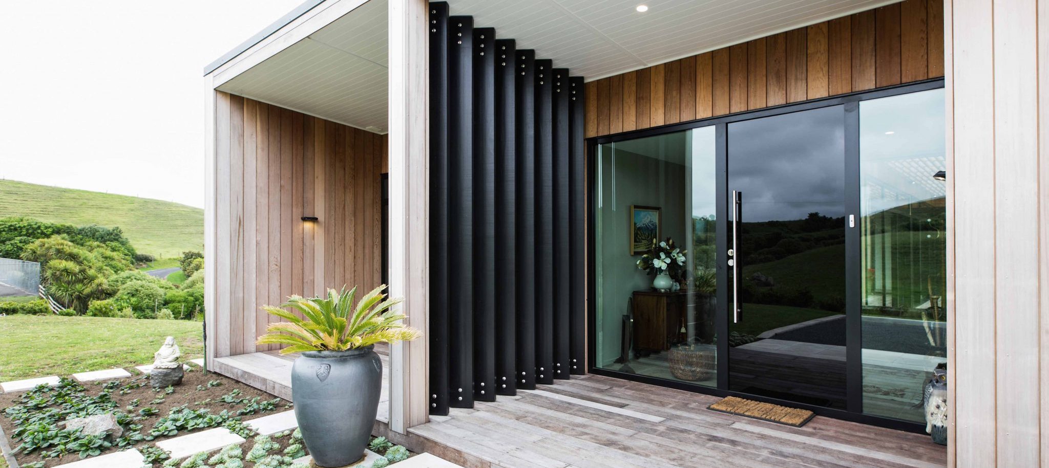 The client wanted a simple home that heroed the coastal view shaft down the Tapuae Valley.