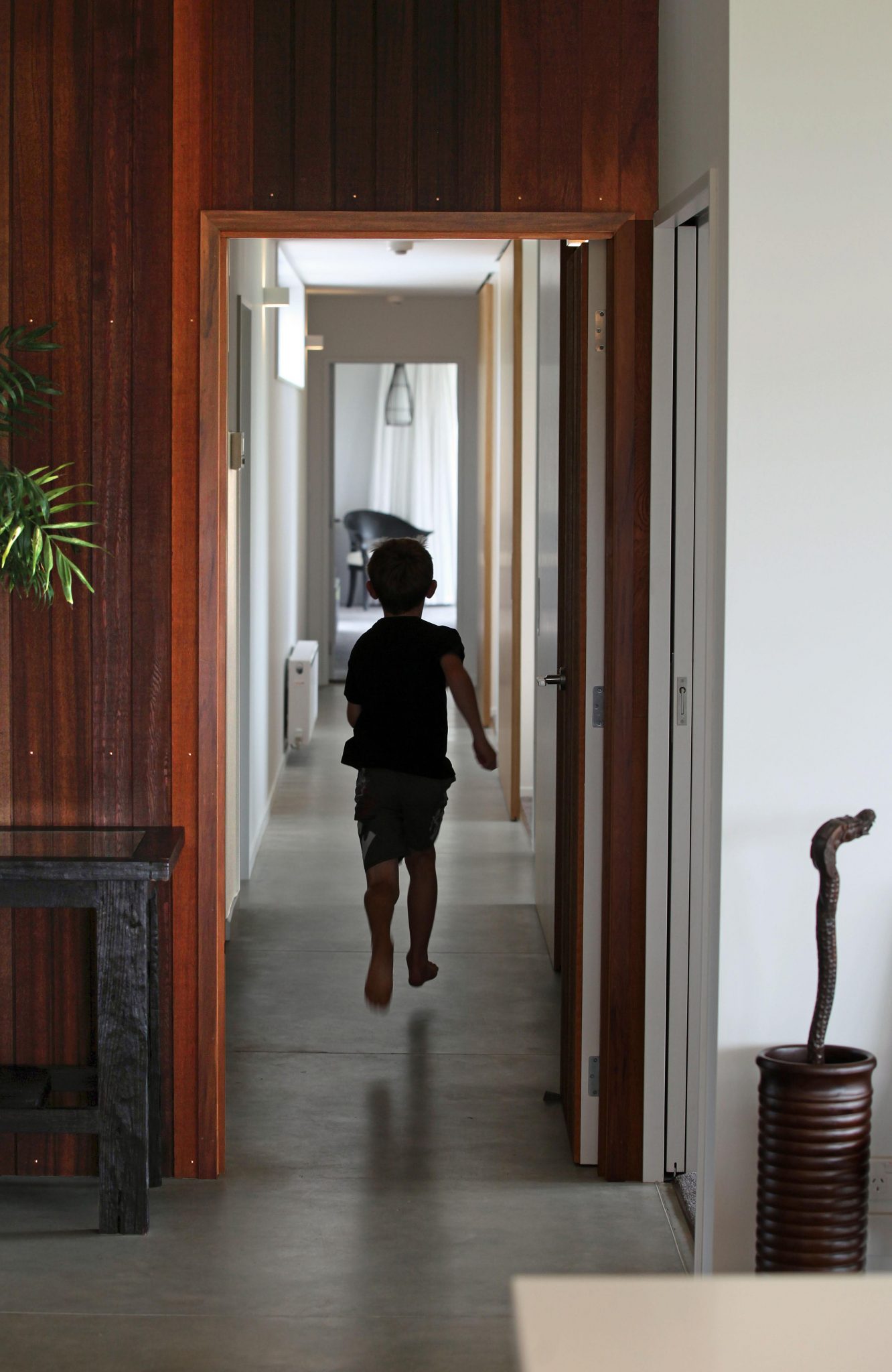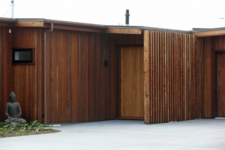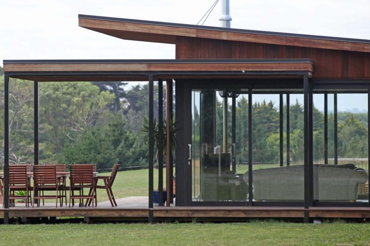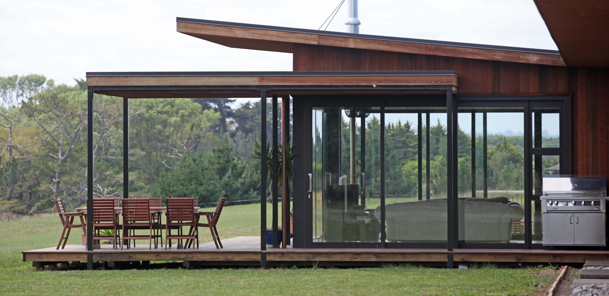 The use of cedar moves from the exterior into internal linings creating a transitioning space between enclosure and exposure to the natural elements. Natural concrete floors and white washed walls allow the natural colours of the rural landscape to envelop the internal spaces.