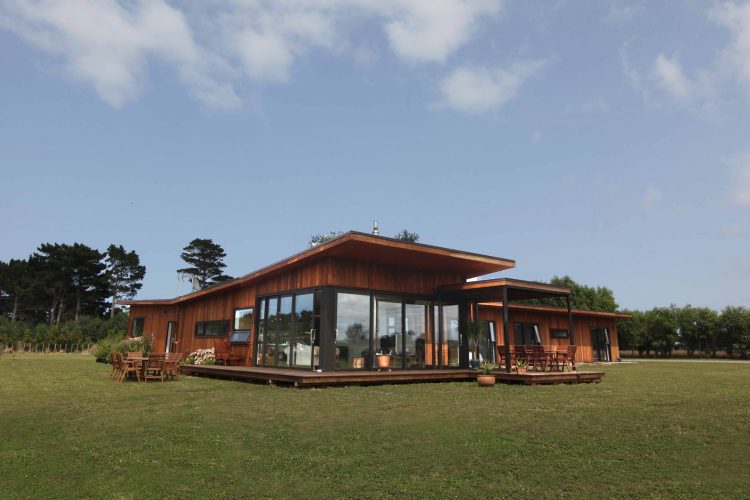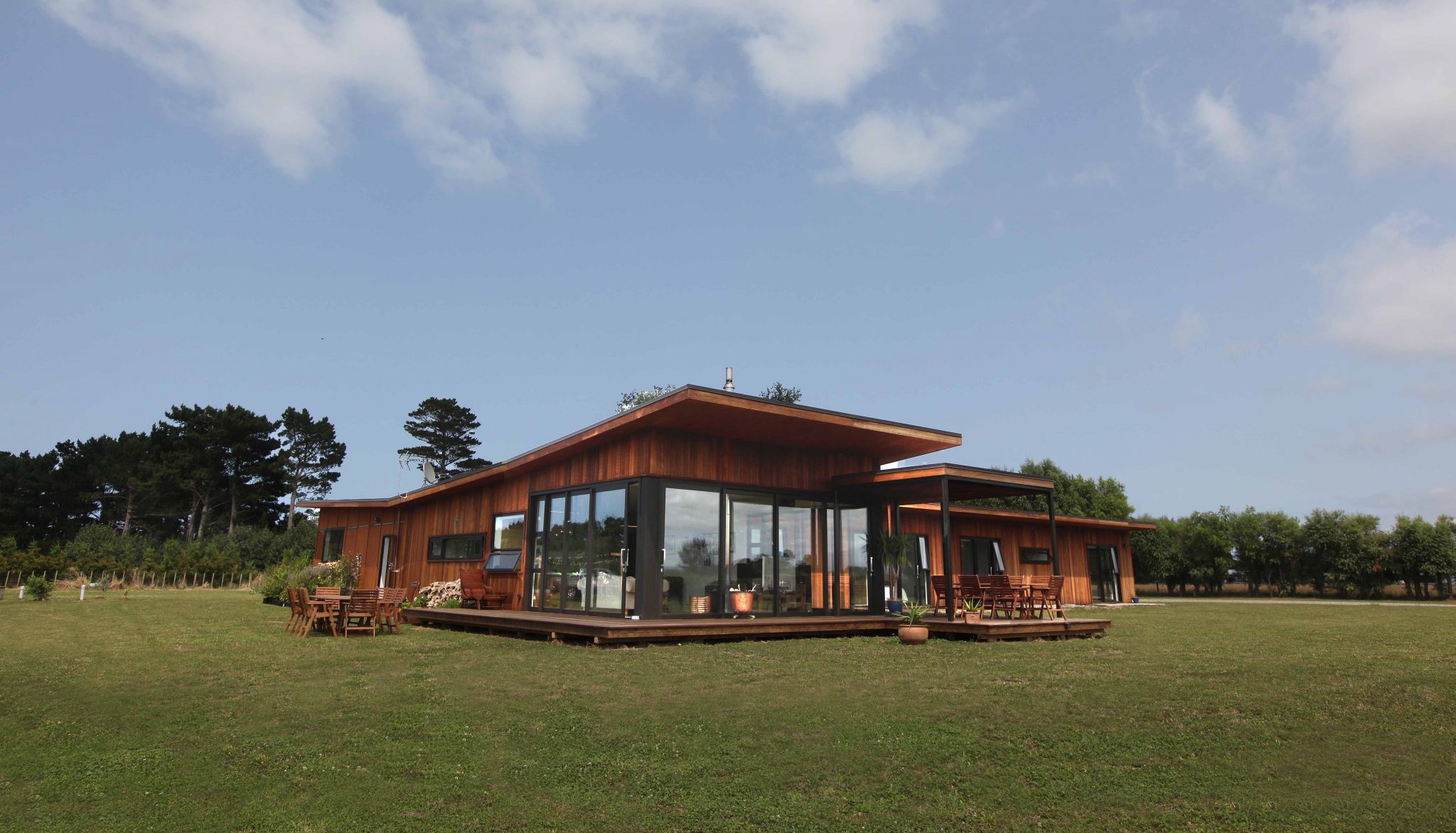 The cedar cladding and plywood soffits create an inviting and warm atmosphere within the spaces. The natural materials means the home merges into its rural surroundings.